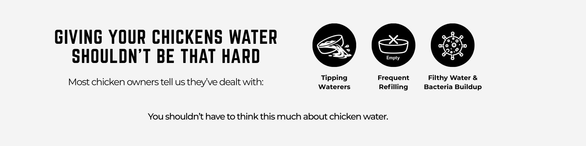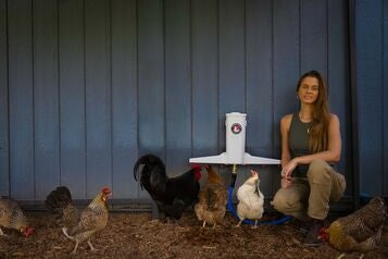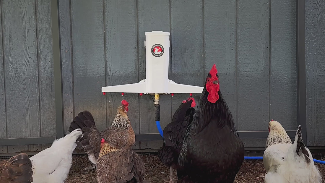 The Chicken Fountain is an automatic chicken waterer that connects directly to a standard garden hose or water line to deliver clean, flowing water on demand. It replaces open bowls and buckets, eliminating daily refilling and reducing contamination from dirt, bedding, and droppings.The system uses durable, poultry-safe drinking nozzles that release water only when birds drink, helping keep water fresher and cleaner. Designed for outdoor coop environments, The Chicken Fountain is built to handle everyday use and changing weather conditions. It can be paired with winter watering setups to help reduce freezing issues during colder months.Once installed, The Chicken Fountain provides a hands-off, low-maintenance chicken coop watering system for flocks of various sizes.Built by real chicken owners who wanted to travel without worry.